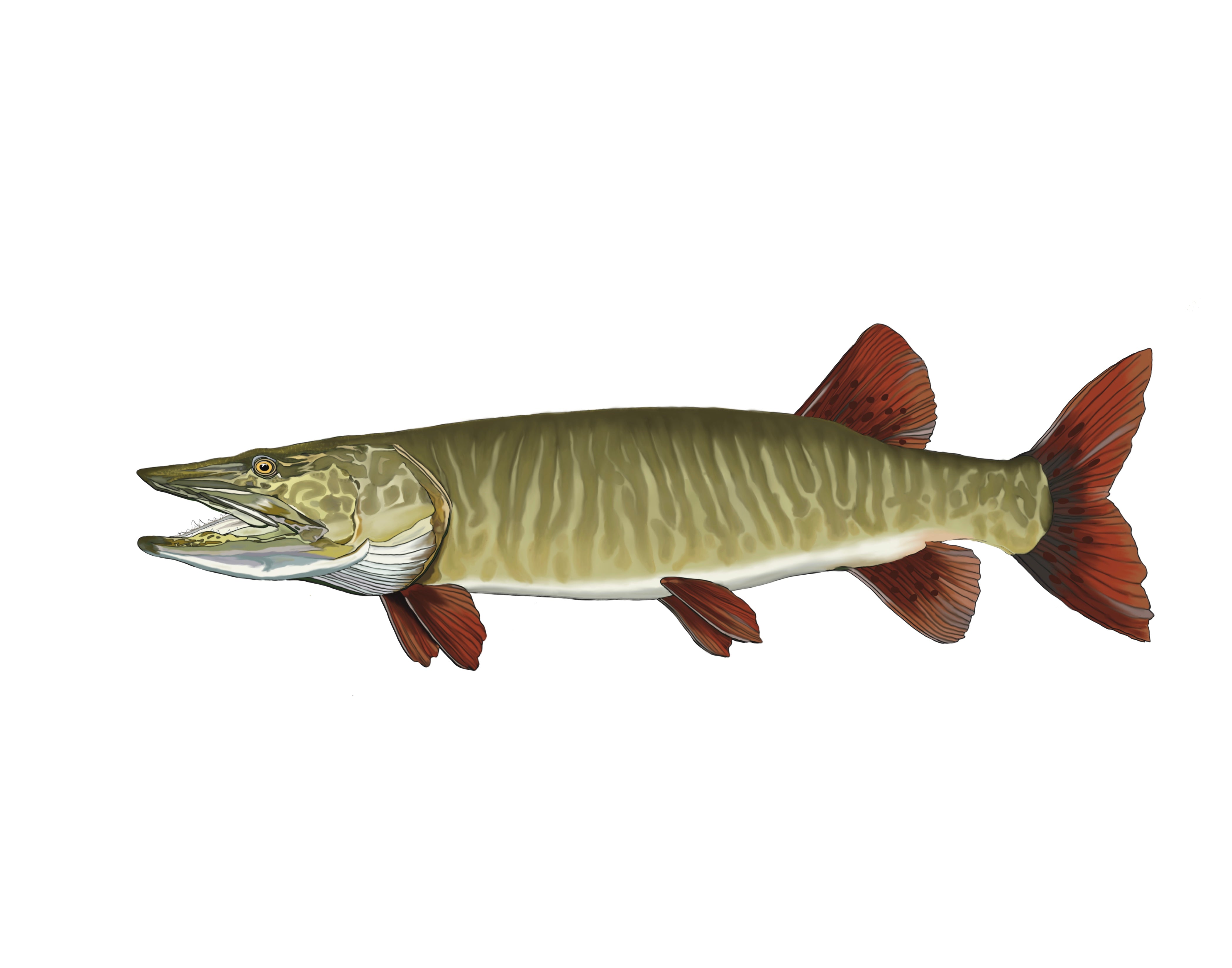 Muskellunge - Barred Sticker. 5.9"x2.1" Premium Quality Durable Vinyl Stickers, Waterproof, UV Resistant for Outdoor Use. Stickers Made for the Outdoors. The big Musky "clear" variety sticker. A unique sticker for the outdoor lover or sportsman.